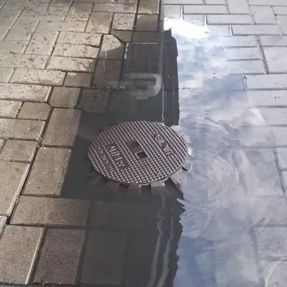 Een verzakte bestrating bij de peilput
